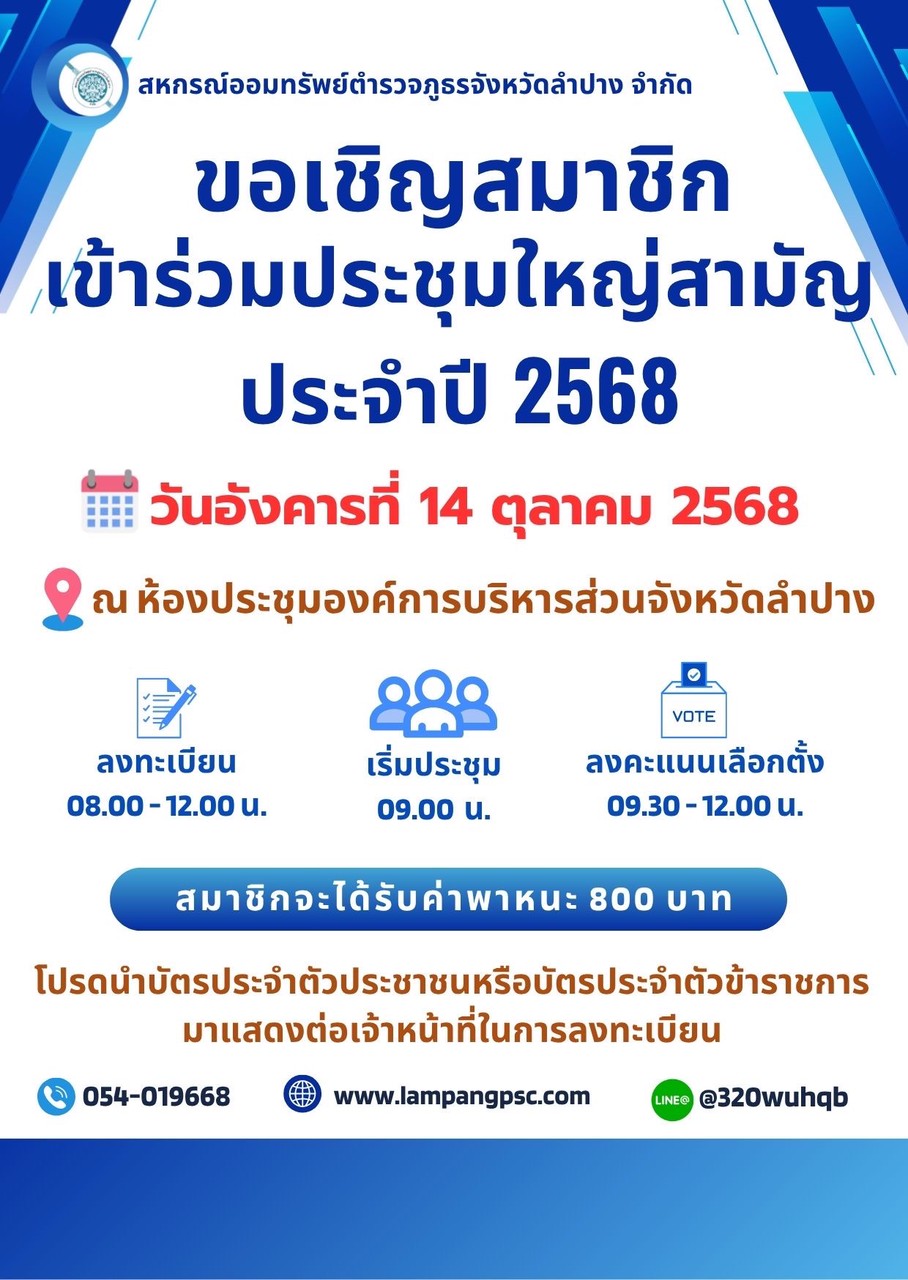 สหกรณ์ออมทรัพย์ตำรวจภูธรจังหวัดลำปาง จำกัด 24 ถนนพระแก้ว ต.เวียงเหนือ อ.เมือง จ.ลำปาง 52000 โทร. 0-5422-5650 โทรสาร. 0-5422-5650